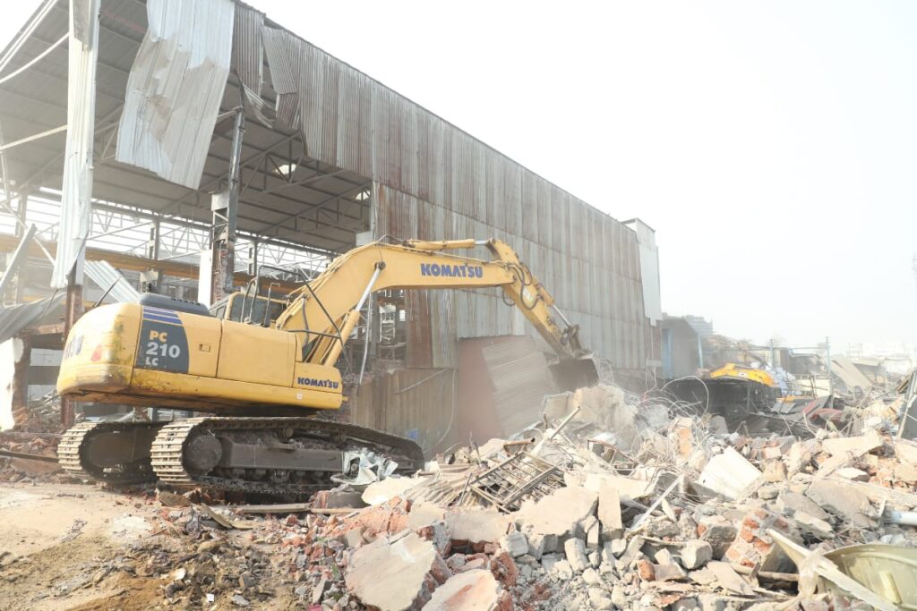 On Sunday, the Building Permit and Unauthorized Construction Control Department, along with regional teams, razed 68.78 lakh square feet of illegal constructions, bringing down 607 unauthorized structures. This follows the demolition of 222 illegal constructions the previous day. In total, 829 illegal sheds, factories, godowns, and scrap shops have been removed during this two-day drive.