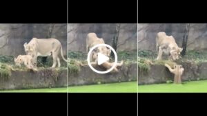 A video is widely being circulated on the Internet where a lion is seen accidently pushing its cub into the