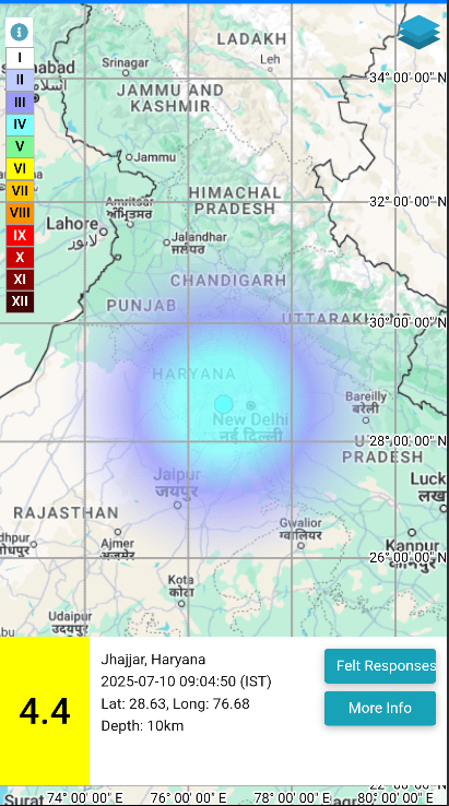 According to the National Center for Seismology (NCS), the earthquake had a depth of 10 km, with its epicenter located 3 km northeast of Jhajjar and 51 km west of Delhi. The tremors were also felt in Ghaziabad, Faridabad, and parts of Rajasthan and Uttar Pradesh, with many residents reporting frightening experiences.