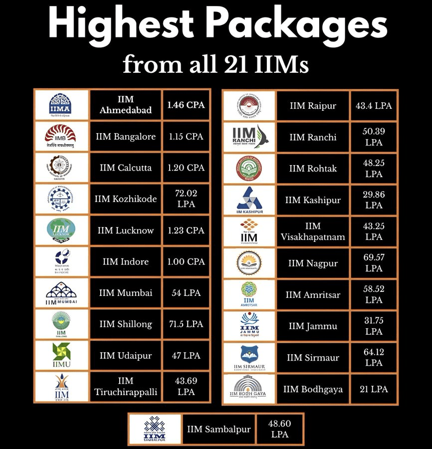 Here are the details of the packages offered by recruiters at different IIMs across the country during this year’s placements.