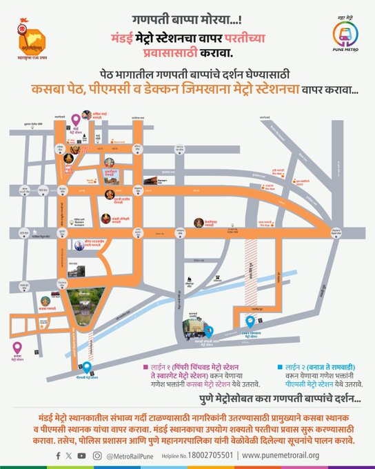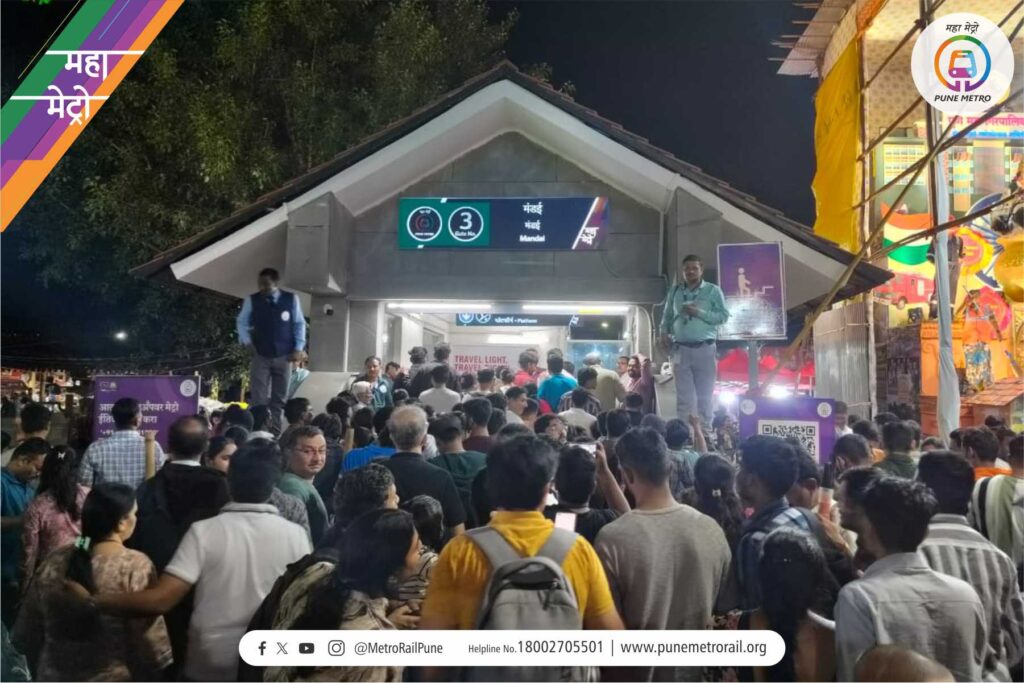 For those heading to popular mandals in Shaniwar Peth, Kasba, and nearby areas, the metro administration strongly recommends alighting at PMC or Kasba Peth stations instead of Mandai for onward journeys, and using Mandai station mainly while returning.