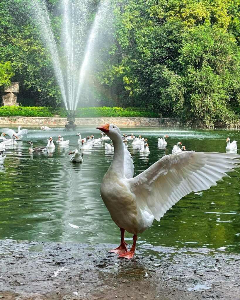The layout of the garden makes every walk a different experience. As you stroll on the pathways, the scenery changes with streams, waterfalls, artificial hills, red-orange fish in ponds, and shady spots to sit and relax. Walking on the lawns is not allowed, but the thoughtfully designed paths ensure you enjoy the views without disturbing the greenery.