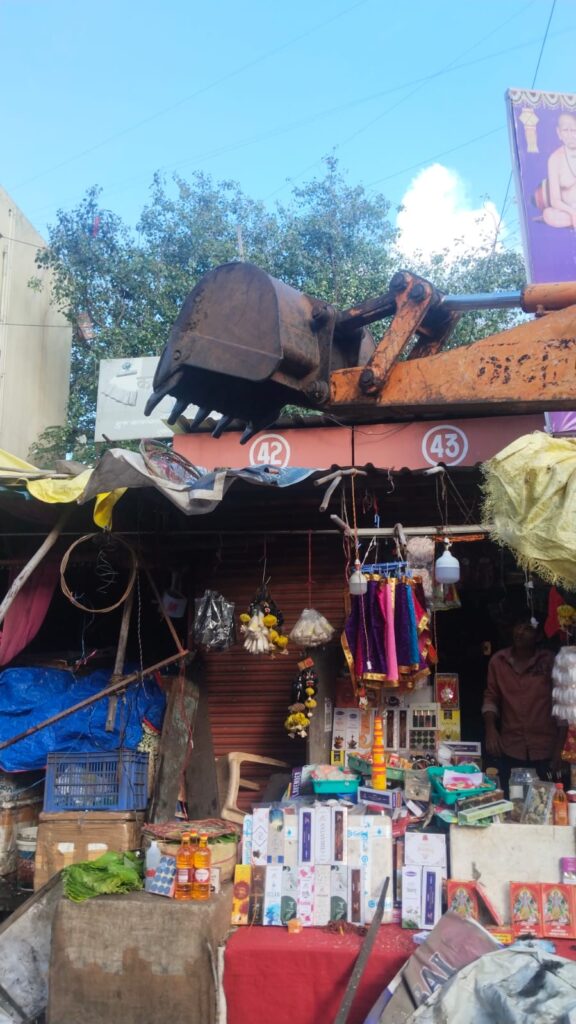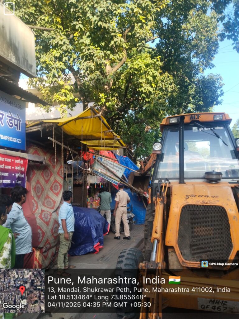 The PMC’s Encroachment Removal Department took action against illegal stalls and sheds at Babu Genu Chowk, Mandai Chowk, and the MSEB Centre area. The operation resulted in the removal of 25 hawker stalls, 40 other unauthorized setups, and 28 sheds. The action was supported by three police personnel, five MSF guards, one JCB, two trucks, and sixteen labourers.