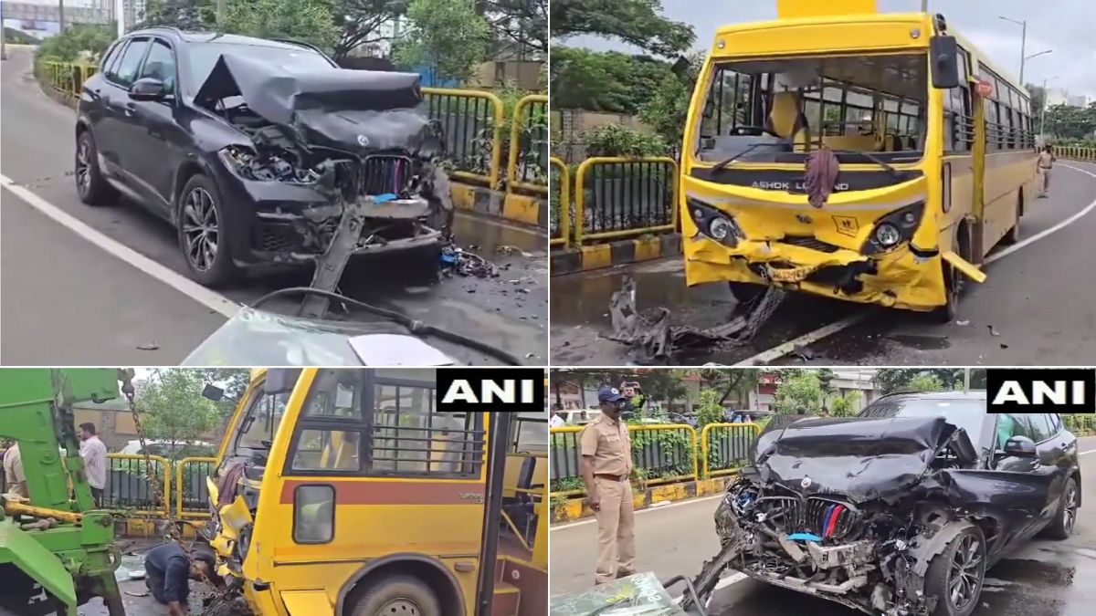 A school bus carrying 15 students collided with a BMW SUV at BIT road in Pune’s Pimpri-Chinchwad. News agency ANI shared the video from the scene. The incident occurred on the Bus Rapid Transit (BRT) route at 12:30 pm. An official said that the bus driver was taken into custody. The car driver is reportedly getting treated for injuries.
