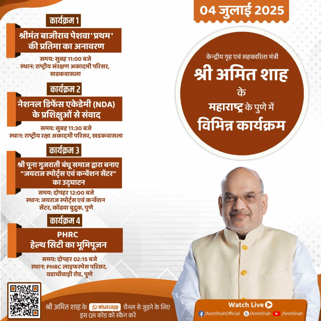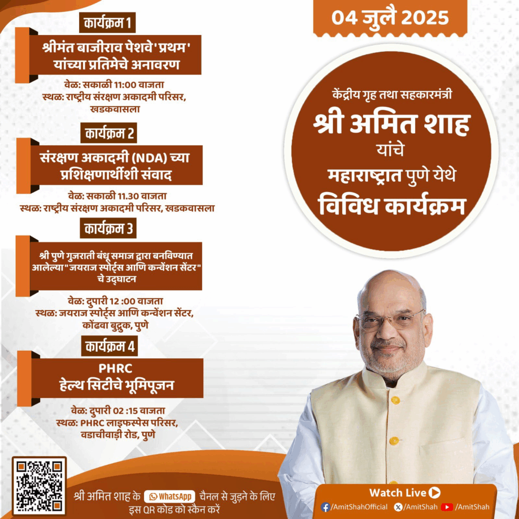 Pune News, July 03, 2025: In view of Union Home Minister Amit Shah’s visit to Pune on July 4, 2025, the Pune Traffic Police have issued temporary traffic regulations to ensure smooth and secure vehicular movement across key areas of the city.