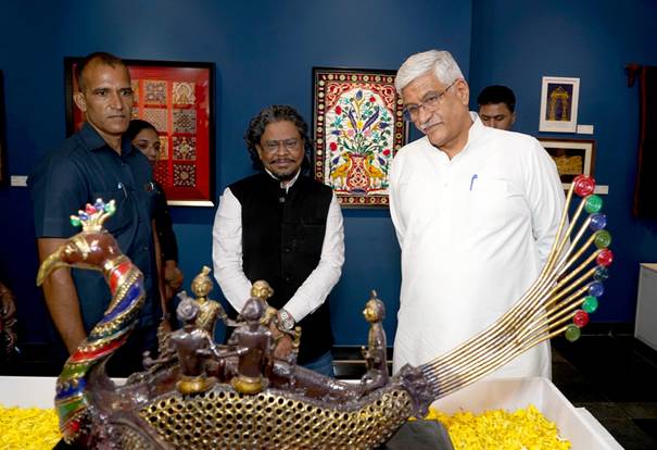 This year’s collection is a vibrant display of India’s culture. It includes stunning paintings, intricate sculptures, traditional handicrafts, and ceremonial items. Some standout pieces include an embroidered Pashmina shawl from Jammu & Kashmir, a magnificent Tanjore painting of Ram Durbar, and a metallic Nataraja statue.